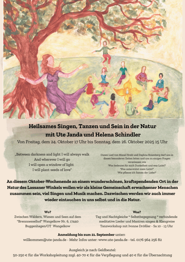 Mein Name ist Ute Janda und ich begleite dich gerne als Einzelne(r) und in der Gruppe.